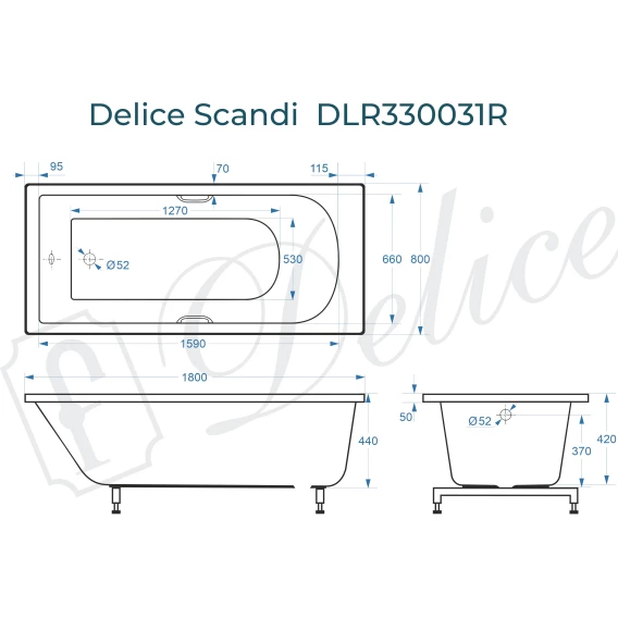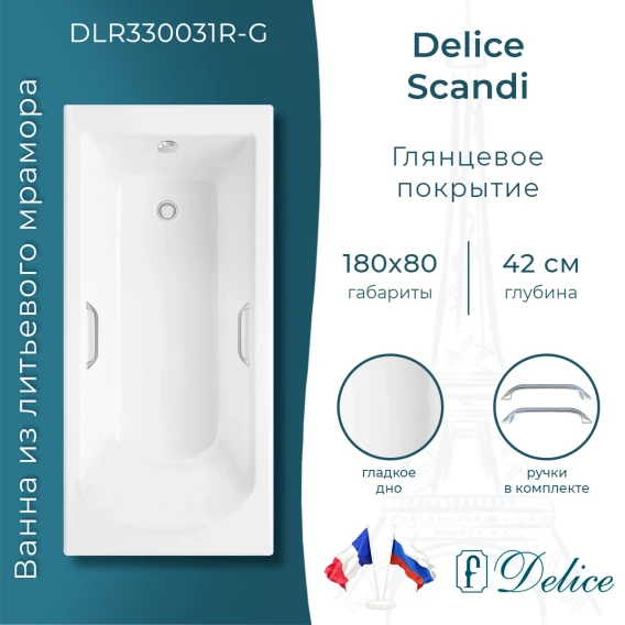 Размерный ряд ванны из литьевого мрамора Delice Scandi: 150х70, 160х70, 165х70, 170х70, 170х75, 170х80, 175х70, 180х70, 180х75, 180х80 и 190х80 см.