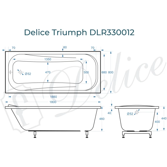 Ванна из литьевого мрамора Delice Triumph DLR330012-M 180x80 см, белый матовый