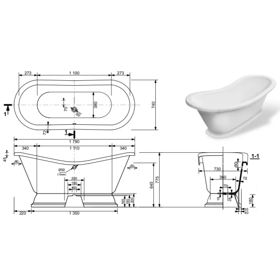 Ванна чугунная Delice Continental Plus DLR230642 100x70 см, белый