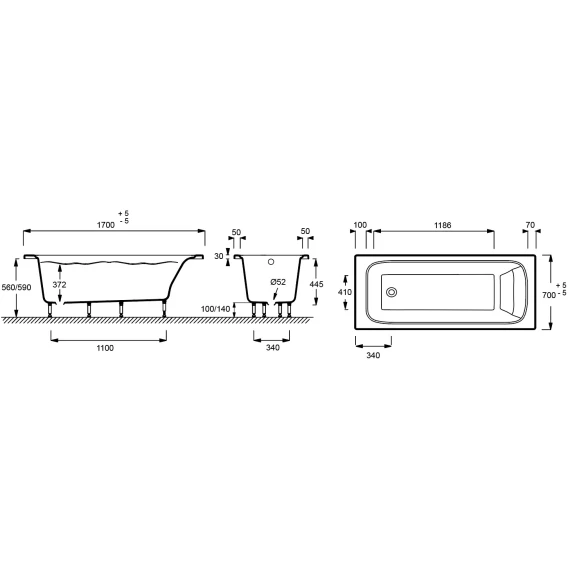 Ванна из литьевого мрамора Jacob Delafon Elite E6D030RU-00 170x70 см, белый