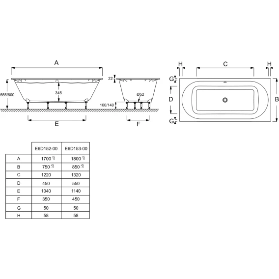Ванна из литьевого мрамора Jacob Delafon Odeon Rive Gauche E6D153-00 180x85 см, белый