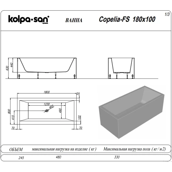 Ванна из литьевого мрамора Kolpa-San Copelia FS 779340 180x80 см, отдельностоящая, белый матовый