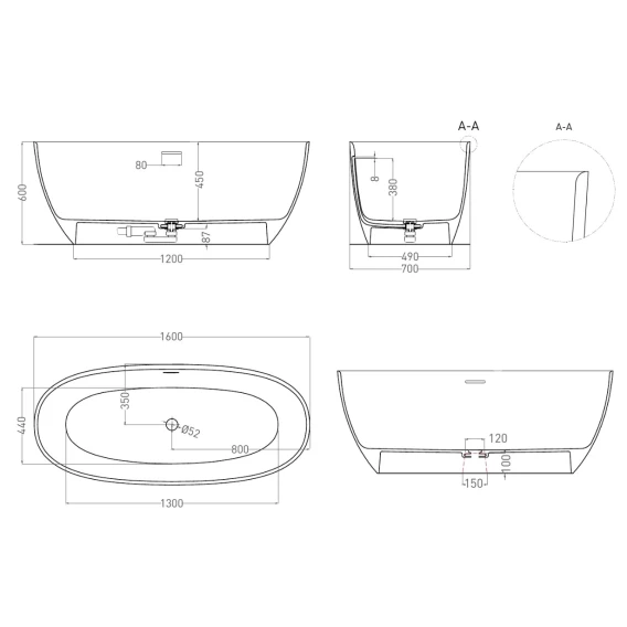 Ванна из литьевого мрамора Salini S-Sense Alda 101914G 160x70 см, отдельностоящая, белый глянец