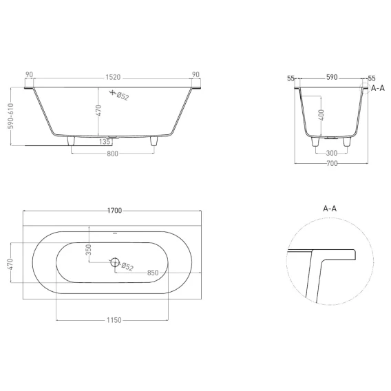 Ванна из литьевого мрамора Salini S-Sense Ornella Axis 104613G 170x70 см, белый глянец