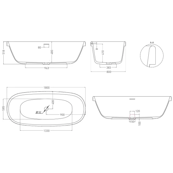 Ванна из литьевого мрамора Salini S-Stone Greca In 104821MF 180x80 см, отдельностоящая, покраска по RAL матовый полностью