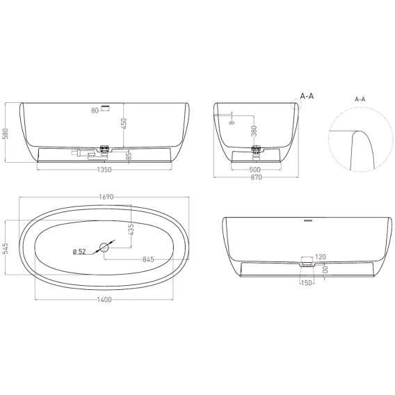 Ванна из литьевого мрамора Salini S-Stone Luce 100121MF 169x87 см, отдельностоящая, покраска по RAL матовый полностью