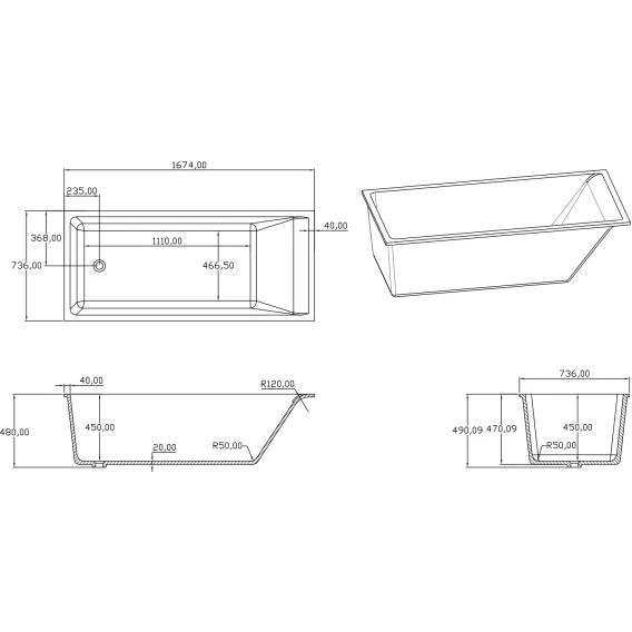 Ванна из литьевого мрамора Timo Anneli Solid Surface ANNELI1675 167,4x73,6 см, белый матовый