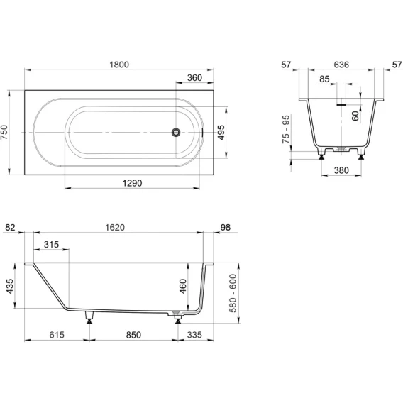Ванна из литьевого мрамора Whitecross Gin 0217.180075.200 180x75 см, белый матовый