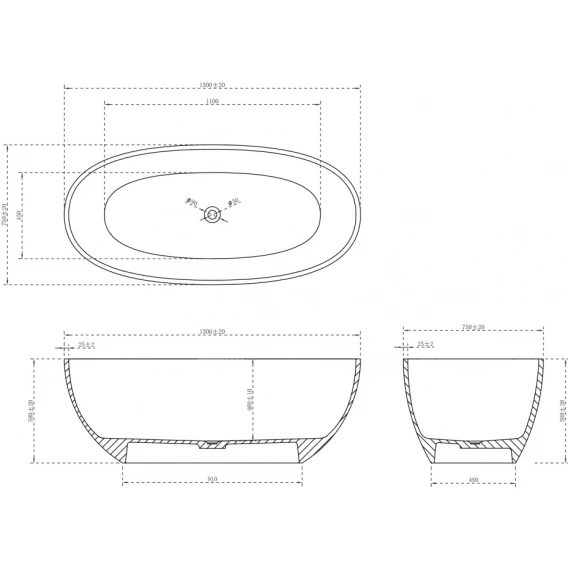 Ванна из полиэфирной смолы Abber Kristall AT9701Onyx-1.5 150x75 см, отдельностоящая, черный