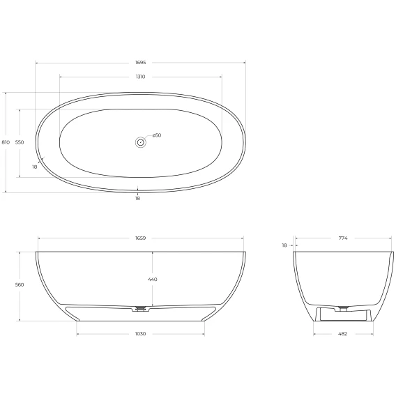 Ванна из полиэфирной смолы Cezares Relax CZR-RELAX-170-80-56-GM-PFB 169,5x81 см, отдельностоящая, серый туман