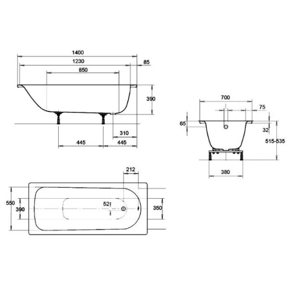 Ванна стальная Kaldewei Eurowa 309-1 119512030001 140x70 см, альпийский белый