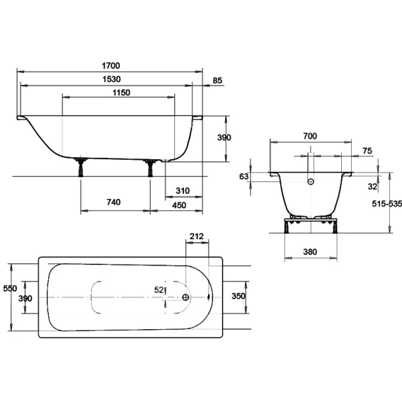 Ванна стальная Kaldewei Eurowa 312-1 119812030001 170x70 см, альпийский белый