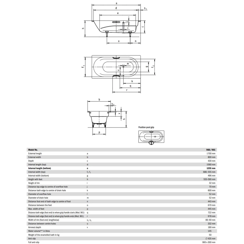 Ванна стальная Kaldewei Vaio 960 234000010001 170x80 см, альпийский белый