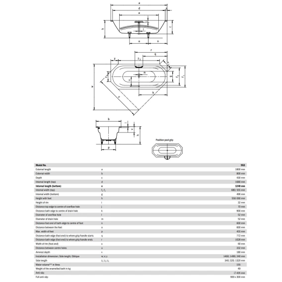 Раковина Uperwood Lotus 29192037 100x50 см L, накладная, уголь