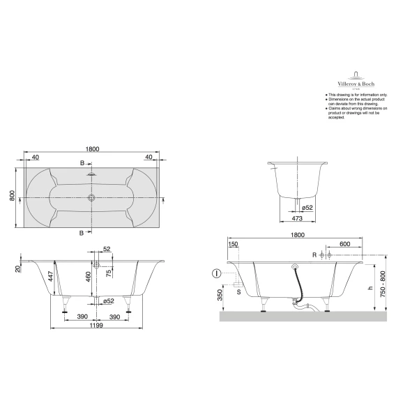 Квариловая ванна 180x80 см альпийский белый Villeroy & Boch Pavia UBQ180PAV2V-01