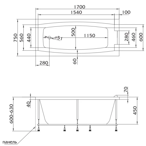 Акриловая ванна 170x75 см Marka One Aelita 01ae1775