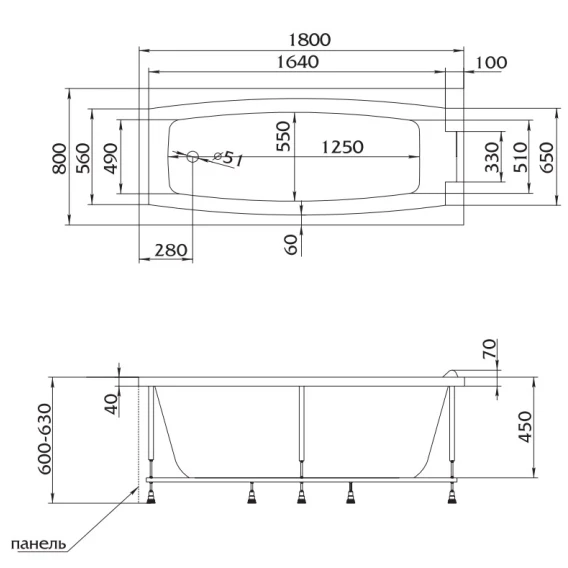 Акриловая ванна 180x80 см Marka One Aelita 01ае1880