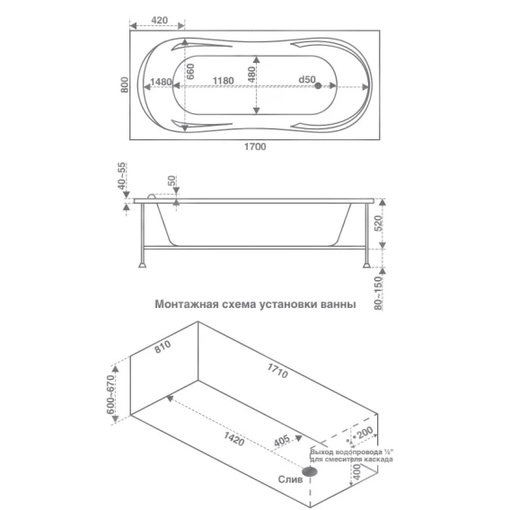 Акриловая ванна 170x80 см Bas Ахин B00005