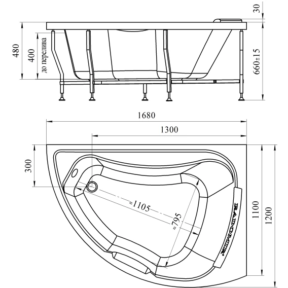 Акриловая ванна 168x120 см левая Radomir Альбена 1-01-0-1-1-015