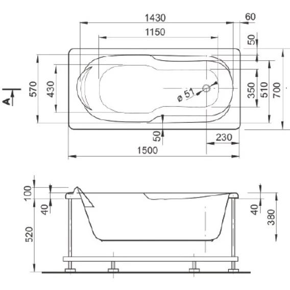 Акриловая ванна 150x70 см Veedi Iva 13415070