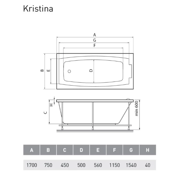 Акриловая ванна 170x75 см Relisan Kristina GL000008873