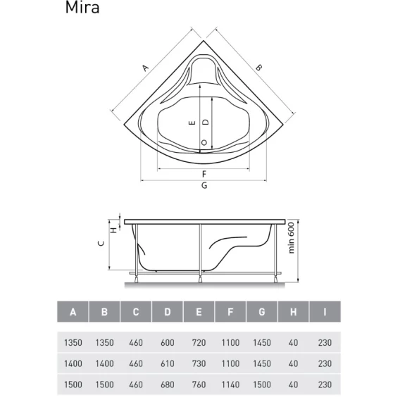 Акриловая ванна 140x140 см Relisan Mira GL000000546