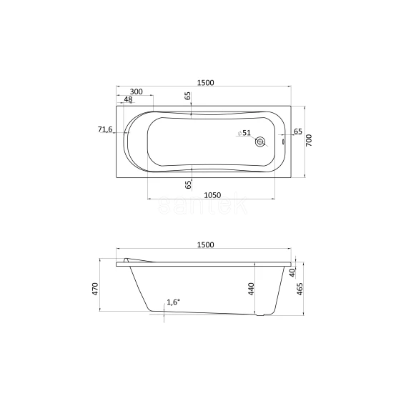 Акриловая ванна 150x70 см Santek Тенерифе 1.WH30.2.213