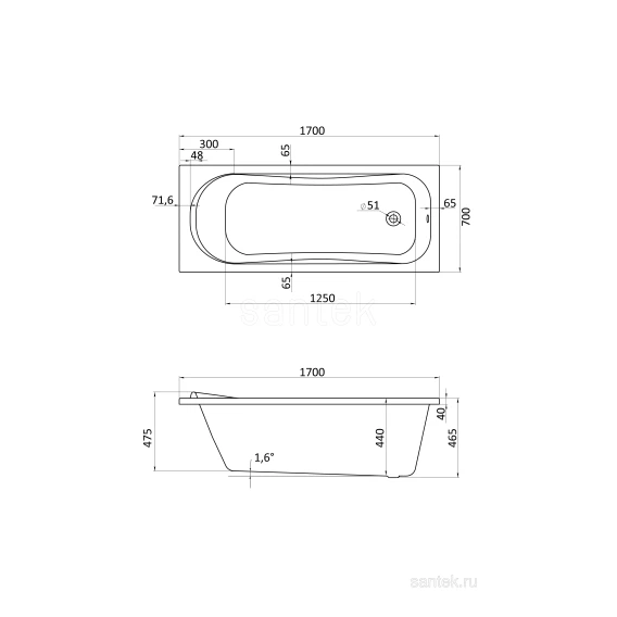 Акриловая ванна 170x70 см Santek Тенерифе 1.WH30.2.207