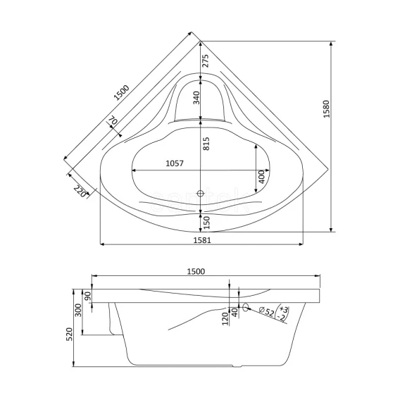 Акриловая ванна 150x150 см Santek Сан-Паулу 1.WH30.2.399
