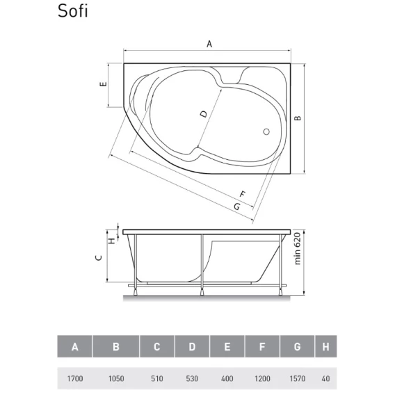 Акриловая ванна 170x105 см R Relisan Sofi GL000009445