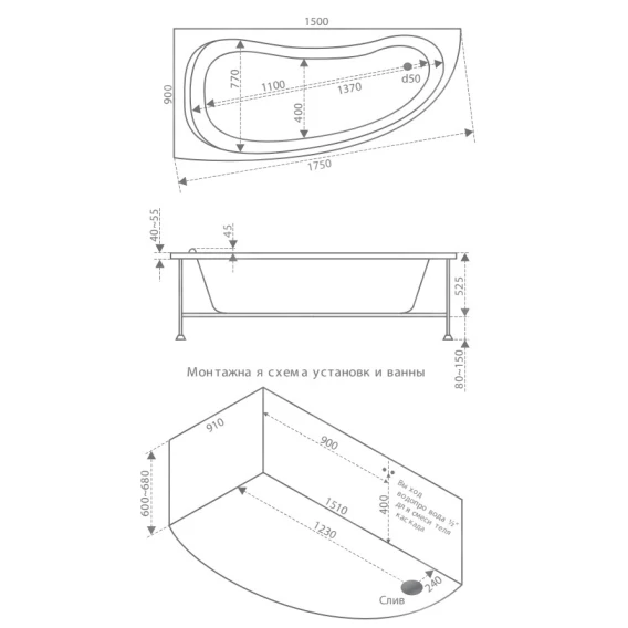 Акриловая ванна 150x90 см R Bas Алегра B00002