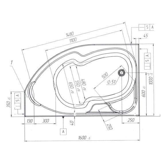 Акриловая ванна 160x100 см R 1Marka Diana 01ди1610п