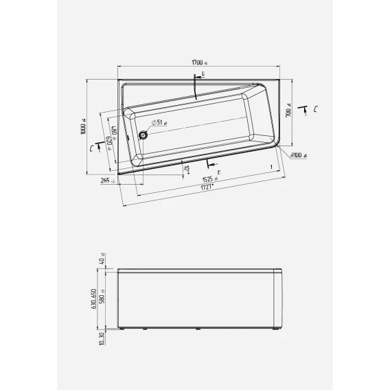 Акриловая ванна 170x100 см L Marka One Direct 01дир1710л