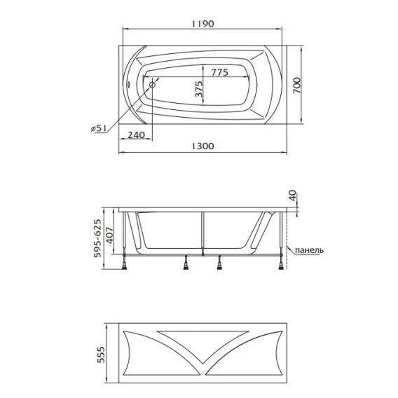 Акриловая ванна 130x70 см 1Marka Elegance 01эл1370