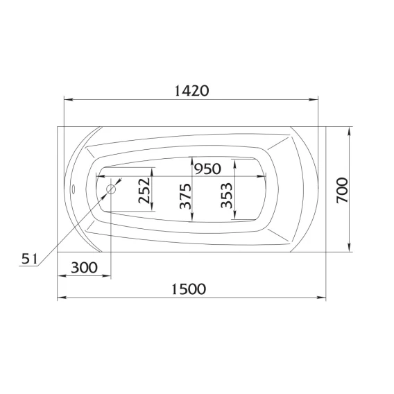 Акриловая ванна 150x70 см 1Marka Elegance 01эл1570