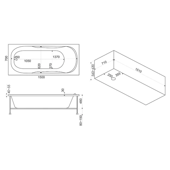 Акриловая ванна 150x70 см Bas Ибица B00011