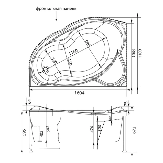 Акриловая ванна 160,4x110 см левая Aquanet Jamaica 00205486