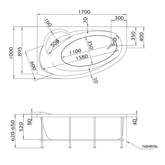 Акриловая ванна 170x100 см R Marka One Julianna 01дж1710п