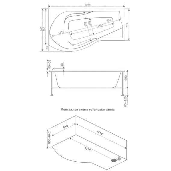 Акриловая ванна 170x94,5 см L Bas Капри B00015