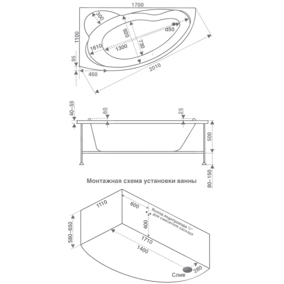 Акриловая ванна 170x110 см L Bas Лагуна B00019