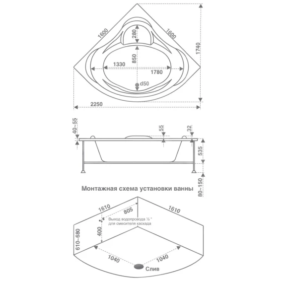 Акриловая ванна 160x160 см Bas Мега B00024