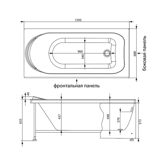 Акриловая ванна 159,3x68,8 см Aquanet Nord 00205533