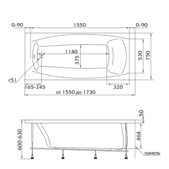 Акриловая ванна 173x75 см Marka One Pragmatika 01пр17375