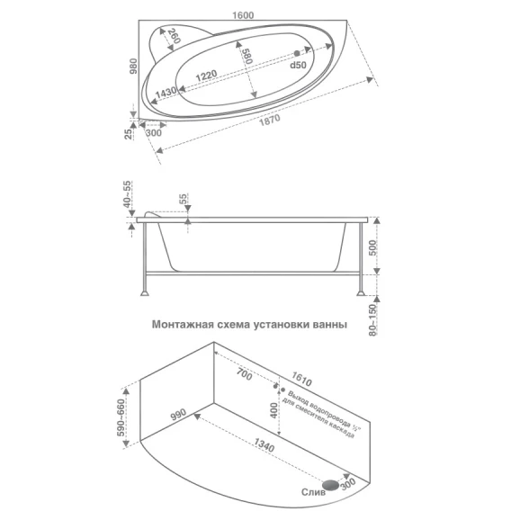 Акриловая ванна 160x100 см R Bas Сагра B00032