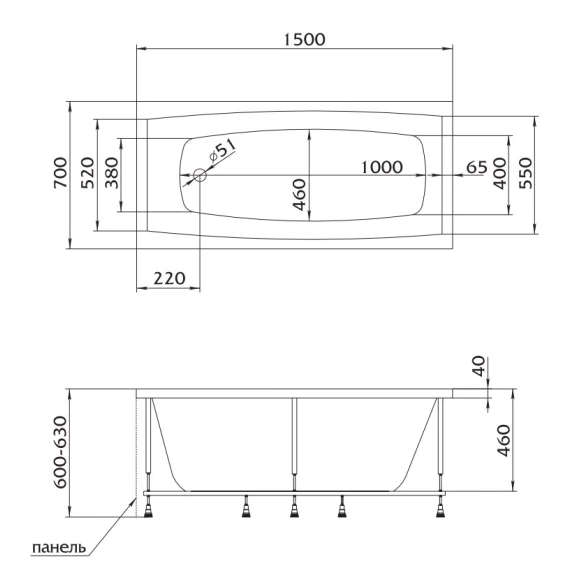 Акриловая ванна 150x70 см Marka One Viola 01ви1570