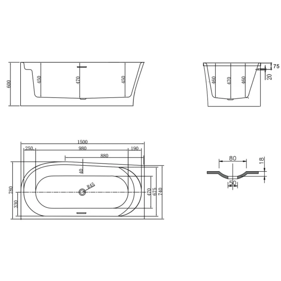 Акриловая ванна 150x78 см Vincea VBT-301-1500R