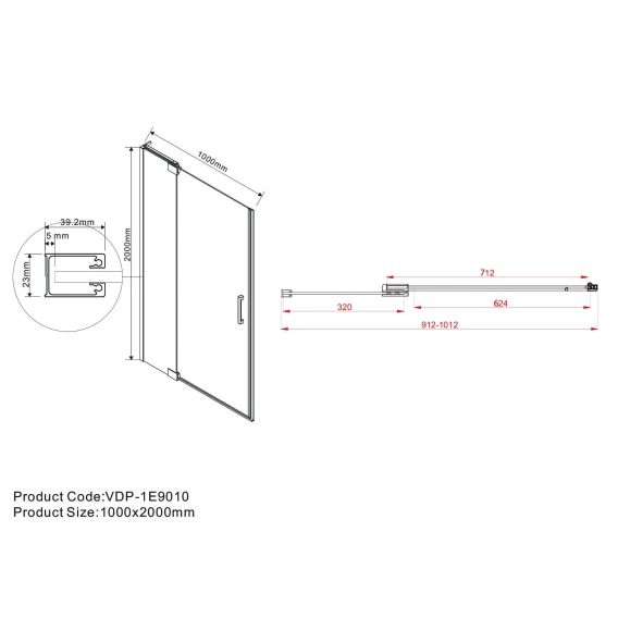 Душевая дверь 91,2-100 см Vincea Extra VDP-1E9010CGB тонированное
