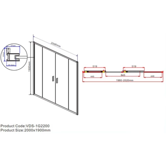 Душевая дверь 200 см Vincea Garda VDS-1G2200CH шиншилла