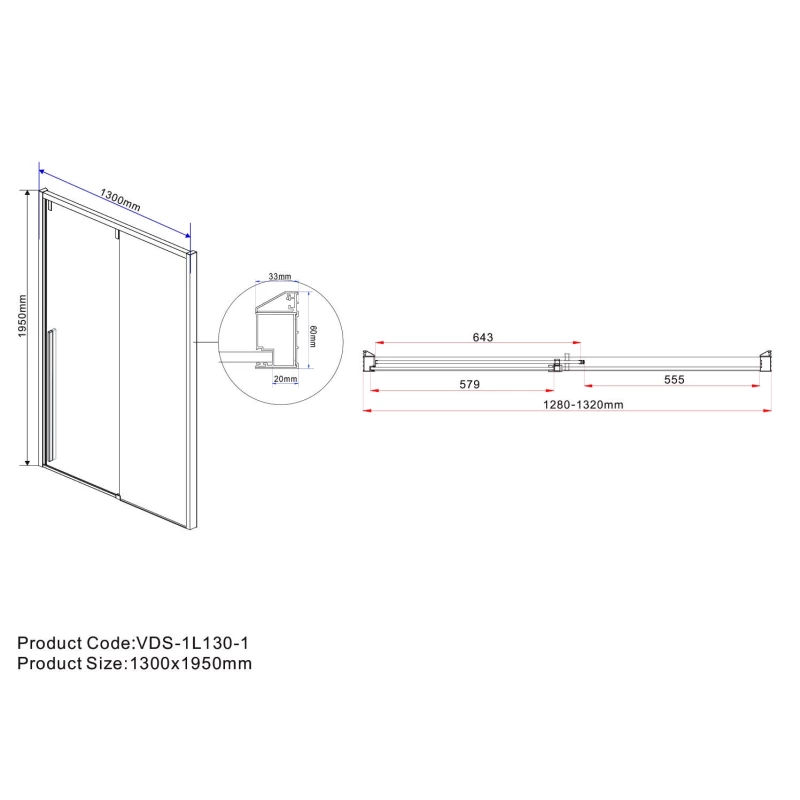 Душевая дверь 130 см Vincea Lugano VDS-1L130CLB-1 прозрачное