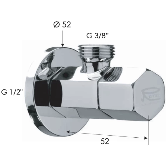 Вентиль Remer 128E1238 1/2" x 3/8", запорный, угловой, хром